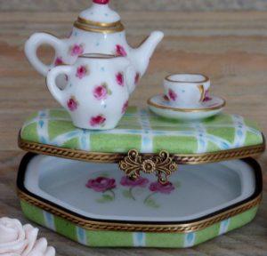 Les petites boites avec miniatures sont un des fleurons de la porcelaine fine fabriquée à Limoges . A l’Atelier nous vous proposons quelques uns de nos assemblages coups de cœur.
