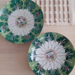 Donc avant de peindre sur les pièces, le travail se fait sur des porcelaines test, pour être sure que les couleurs soient les bonnes après cuisson et que le décor s’approche au mieux des vôtres.